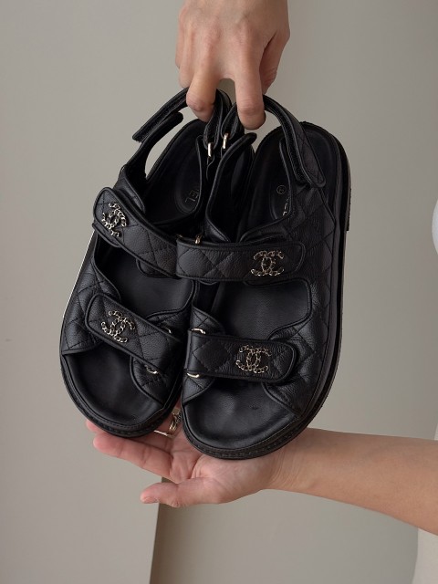 Pre-loved Chanel sandaler – produsert i Italia (kode A C35927, 2018).