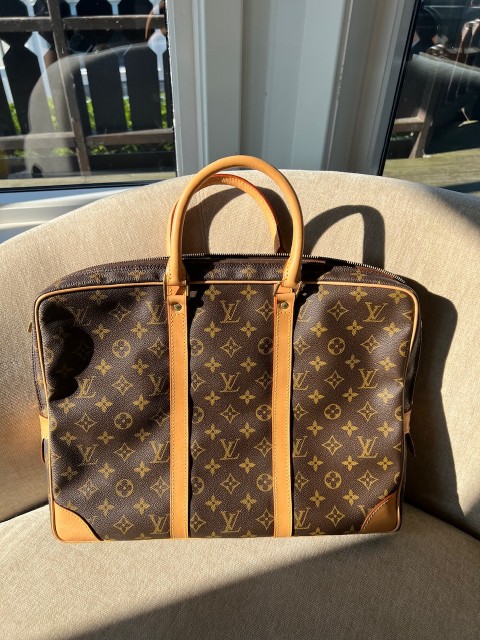 Authentic Louis Vuitton Porte Document Monogram canvass med nytt lær i topp stand , uten skader, vibrant canvass. Ren og pen innvendig. Made in France