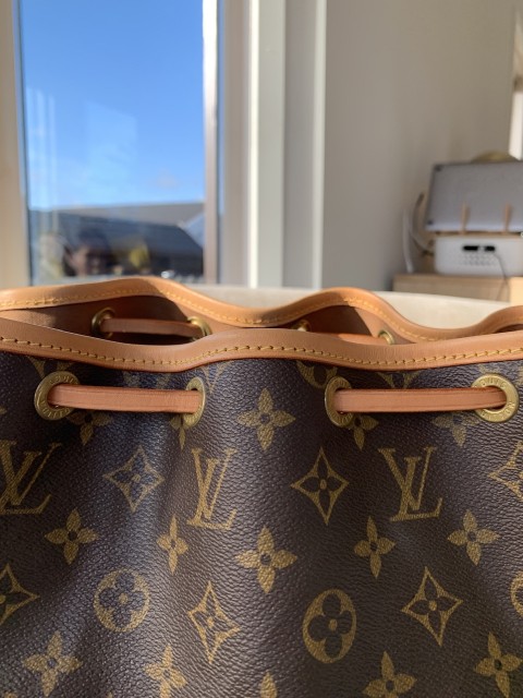 Vi har et begrennset antall Noe Gm som er restaurert med 100% nytt lær (vi bruker samme patina/stiching som orginal LV) der vi har beholdt den gammle logoen nede på kortsiden. Det nye læret gjør at veskene kan brukes som om de var nye. Vi har også spesialbestillt litt lengre reimer slik at skandinaviske kvinner kan bruke vesken crossbody. Orginale logoer er retusjert for å matche fargen på nytt lær Restored LV noe GM med crossbody reim